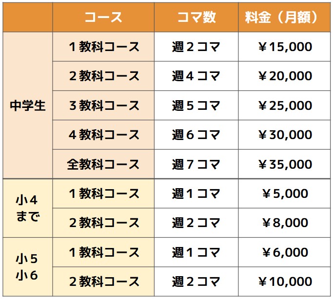 毎月の月謝以外は1円もかかりません。季節講習も無料です。