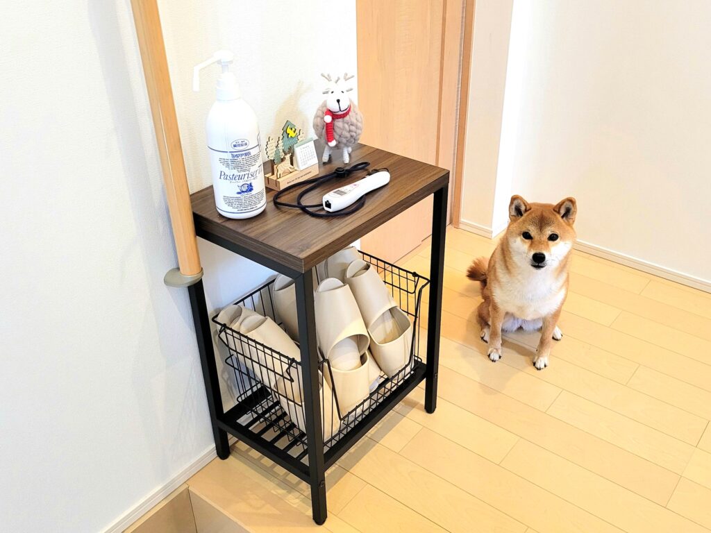 玄関に消毒用アルコールと体温計を設置。入室時の検温・消毒を徹底しています。また生徒用のスリッパも使用後に消毒いたします。