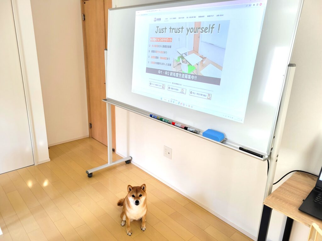 プロジェクターでテキストや映像をホワイトボードに映して授業を進めていきます。