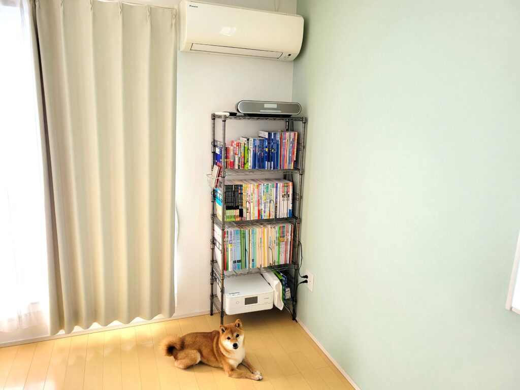 本棚には問題集が揃っているので自由に使用できます。もちろんエアコンも完備。